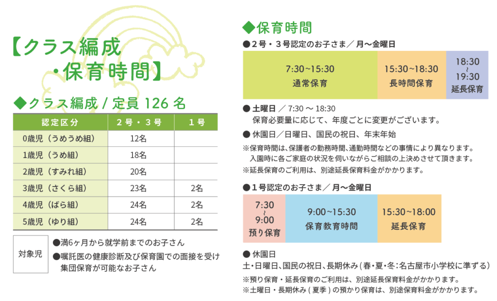 ● 1号認定:教育時間中心(主に幼稚園利用)